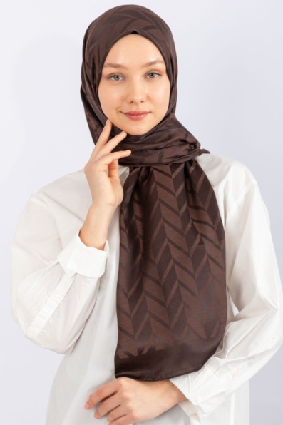 İpeksi Zikzak Jakar Şal Acı Kahve